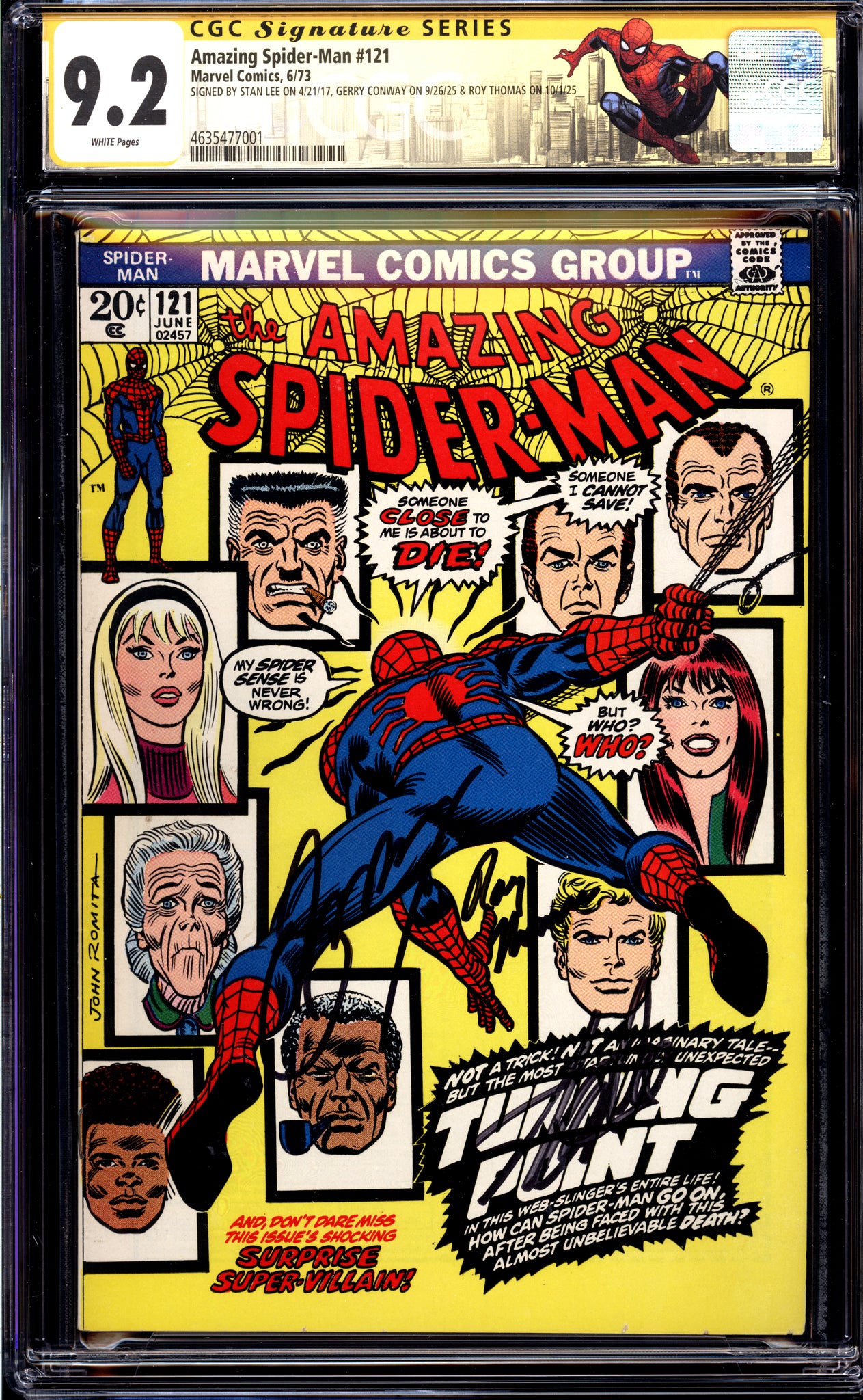 SIGNED BY STAN LEE ON 4/21/17, GERRY CONWAY ON 9/26/25 & ROY THOMAS ON 10/1/25
