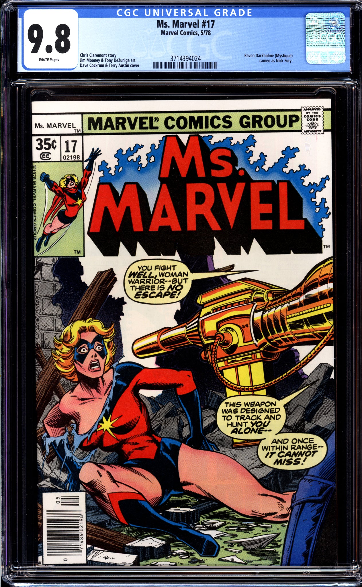 Ms. Marvel #17 CGC 9.8 (1978) Raven Darkholme Cameo as Nick Fury