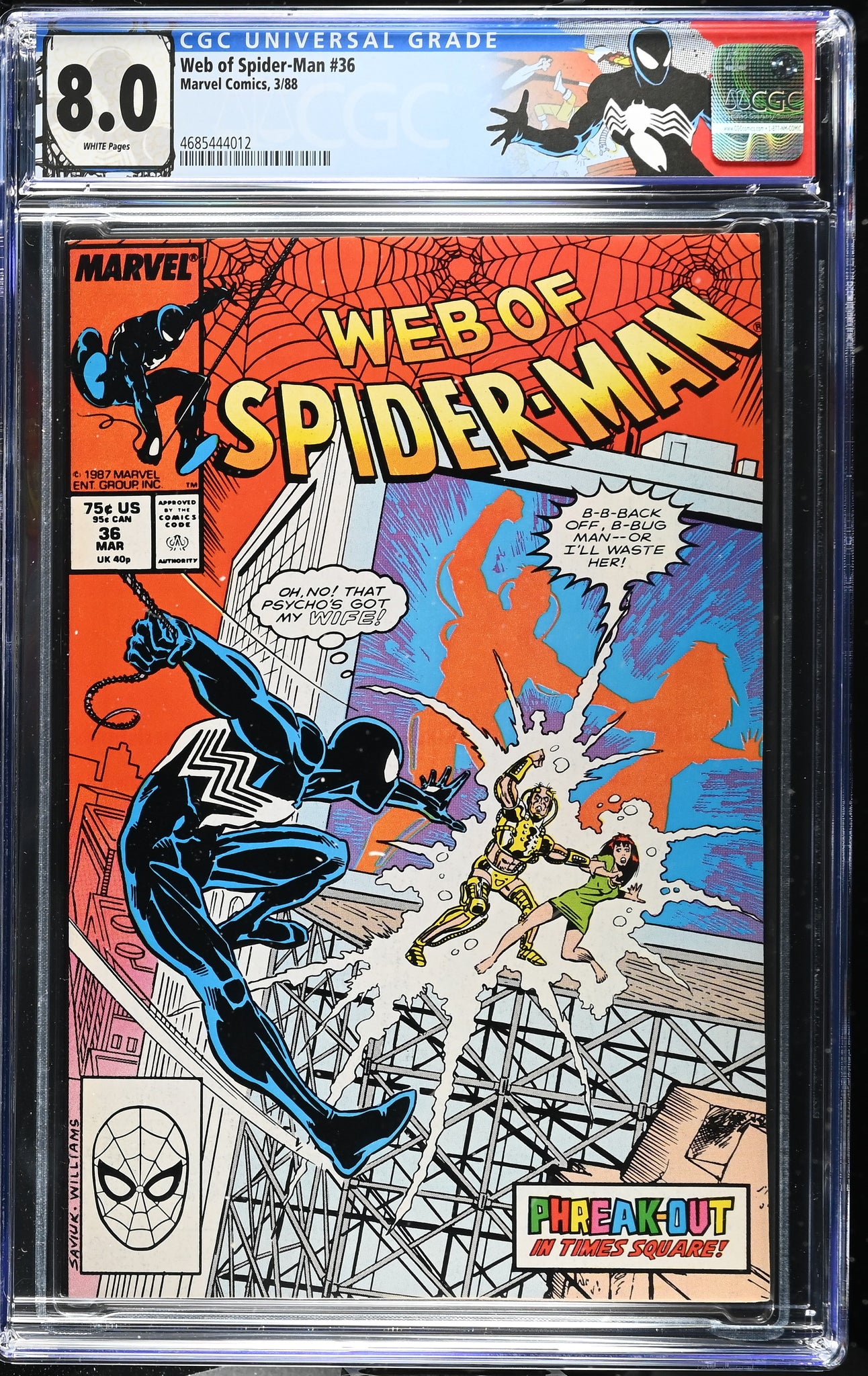 Web of Spider-Man #36 CGC 8.0 (1988) 1st App of Tombstone!