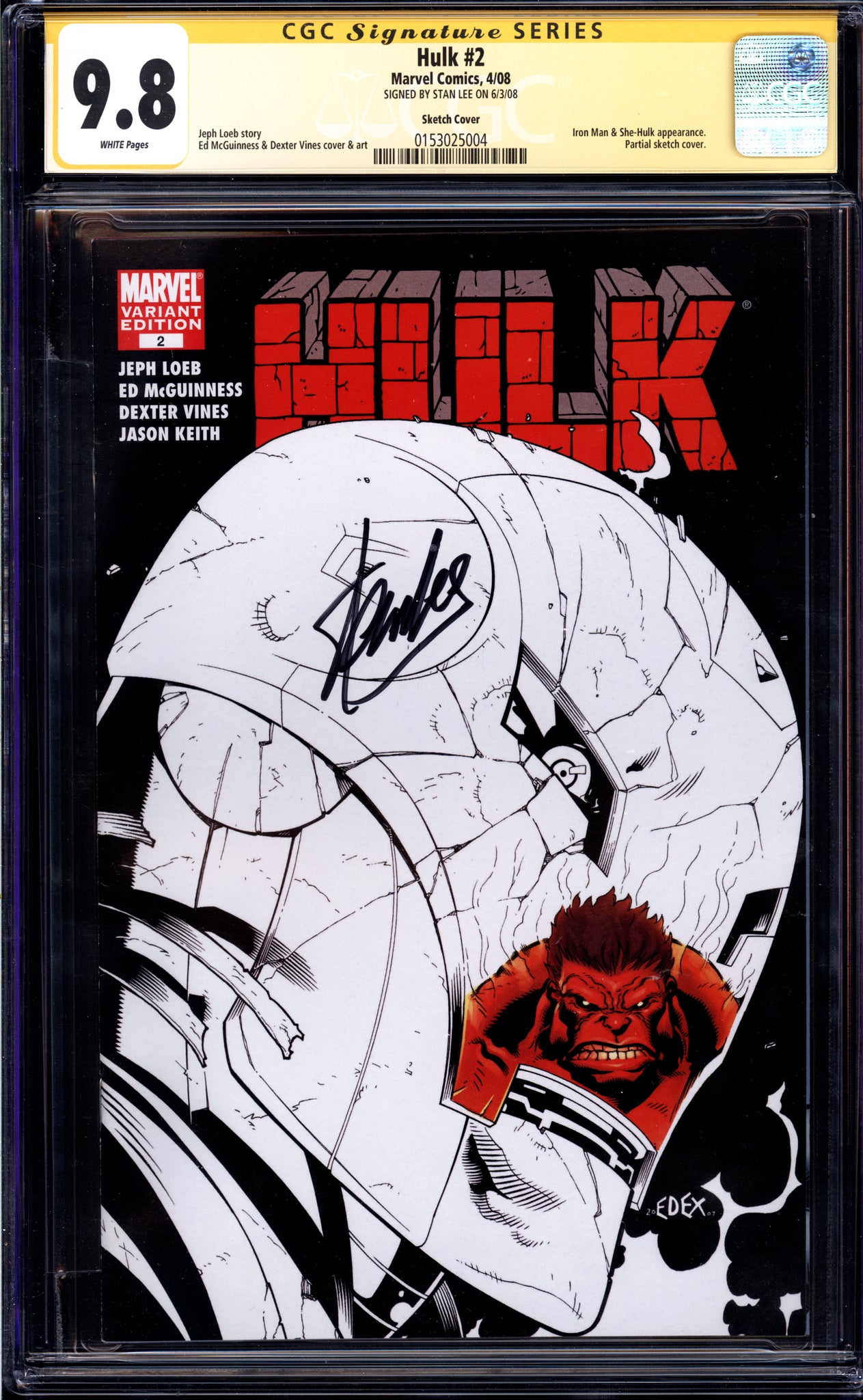 Hulk #2 CGC 9.8 (2008) Signed by Stan Lee! 1:1000 Sketch Cover