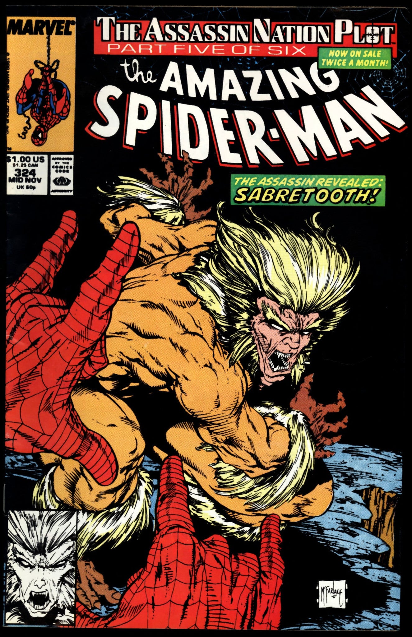 Amazing Spider-Man #324 Marvel 1989 (VF+) Todd McFarlane Sabretooth Cover