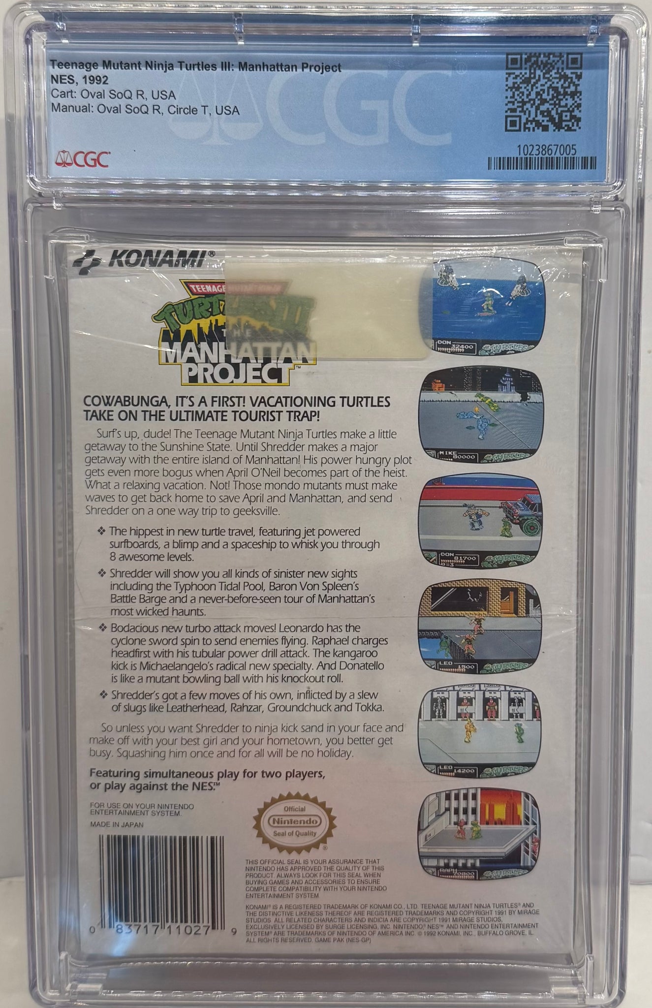 Teenage Mutant Ninja Turtles III: Manhattan Project NES Oval SoQ R, USA CGC 9.6 100% CIB!
